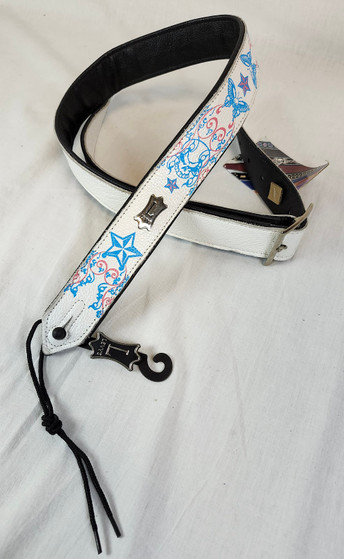 Levy's PM28STP-002 1.5" Leather Guitar Strap w/Buckle, White, Skull Graphic, Discontinued!